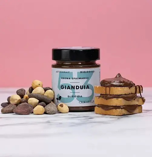 Le nocciole di Sicilia con loro sapore ricco e corposo rendono la nostra spalmabile davvero irresistibile. Solo 3 ingredienti: Nocciole di Sicilia al 53% per un gusto intenso, cacao per un tocco in più di golosità, zucchero di canna per una naturale dolcezza.